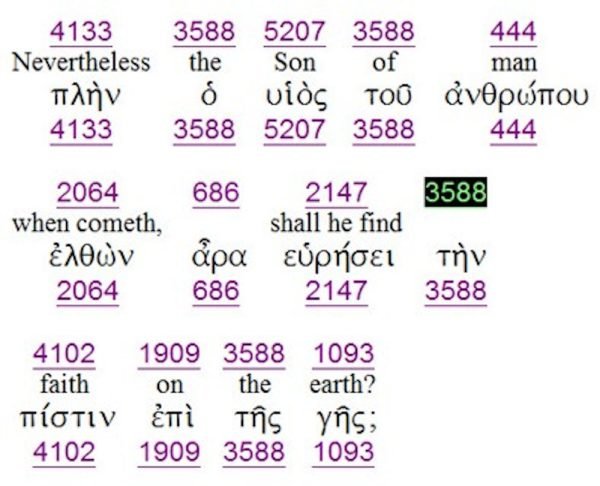 Here is how the King James Version renders Luke 18:8. Luke 18:8 KJV 8 I tell you that he will avenge them speedily. Nevertheless when the Son of man cometh, shall he find faith on the…